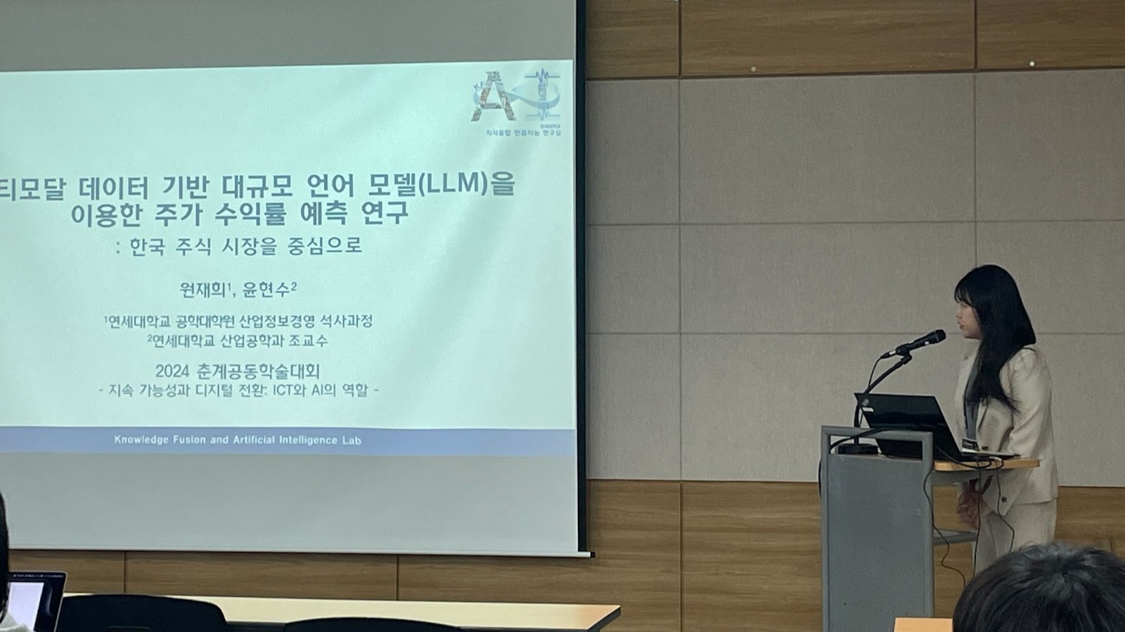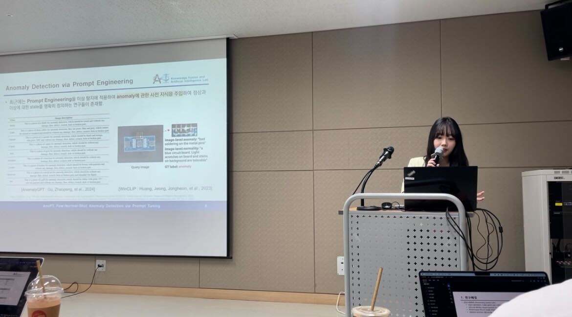 오영제, 장서윤, 한지훈, 원재희, 전재휘, 이주훈 연구원이 자신의 연구주제에 대해 발표하고 산업공학과의 다양한 연구주제를 접하는 시간을 보냈습니다.발표 현장